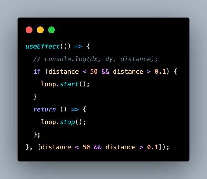 }, [distance < 50 && distance > 0.1]); <=== !!!